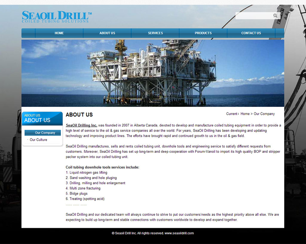 Seaoil Drill Inc. (SDI) was founded in 2007 in Alberta Canada, devoted to develop and manufacture coiled tubing equipment in order to provide a high level of service to the oil & gas service companies all over the world. For years, SDI has been developing and updating technology and improving product lines. The efforts have brought rapid and continued growth to us in the oil & gas field.