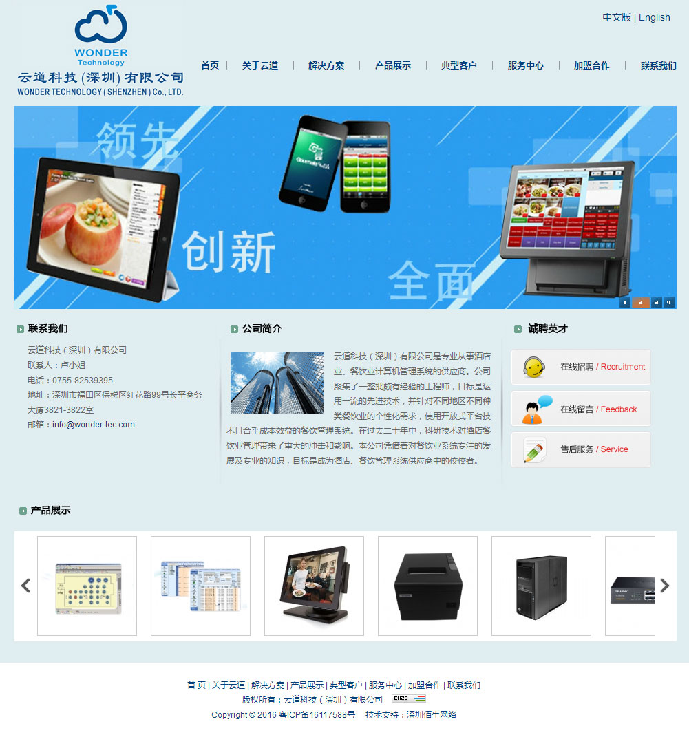 云道科技(深圳)有限公司是专业从事酒店业、餐饮业计算机管理系统的供应商。公司聚集了一整批颇有经验的工程师,目标是运用一流的先进技术,并针对不同地区不同种类餐饮业的个性化需求,使用开放式平台技术且合乎成本效益的餐饮管理系统。
